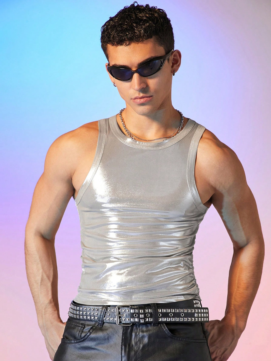 Details: RuchedNeckline: Round NeckSleeve Length: SleevelessStyle: Glamorous - Disco StyleHem Shaped: RegularIdeal for: UnisexScenes: StreetColor:...